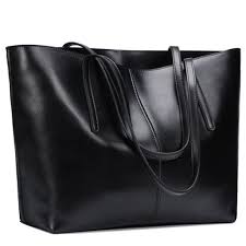 Womens black leather bag, with ample space. Can be worn over the shoulder, or remove straps to carry in your hand.
